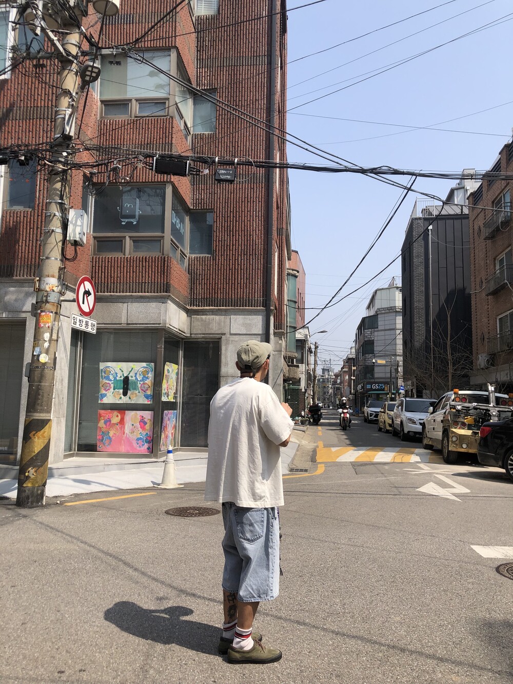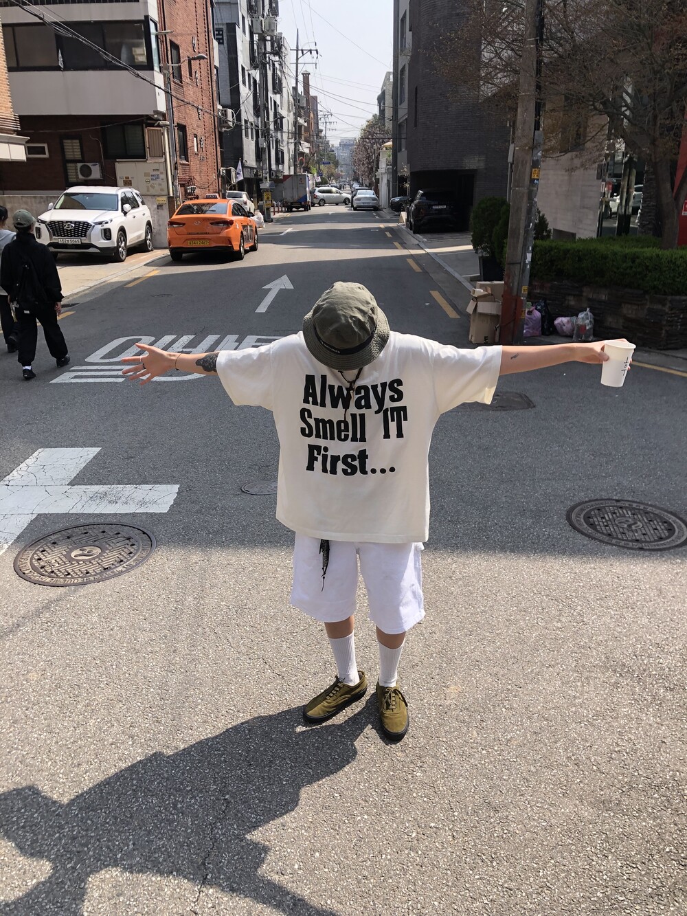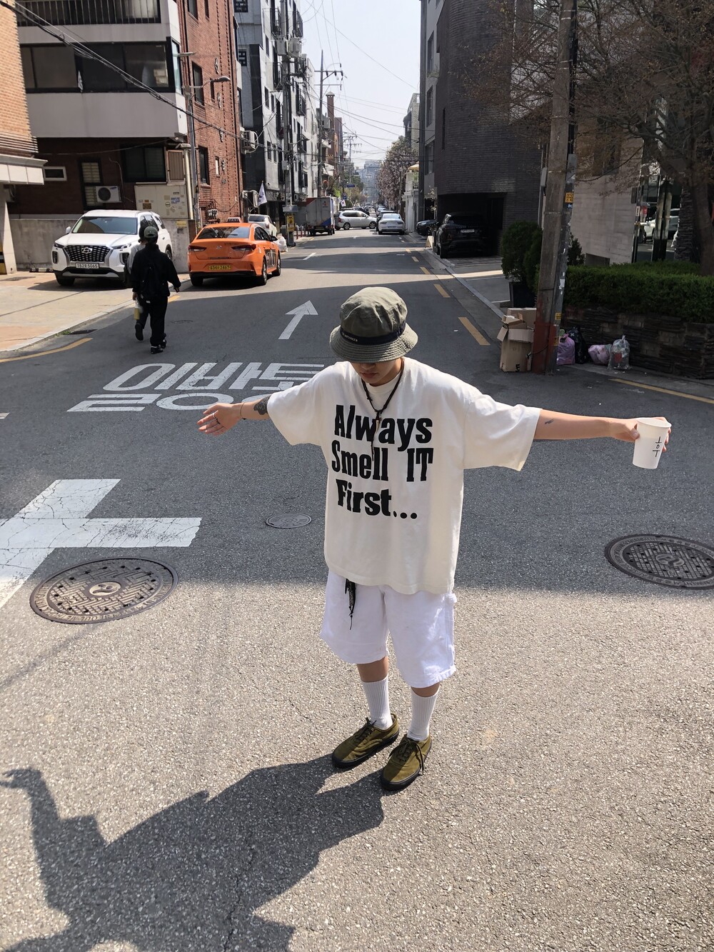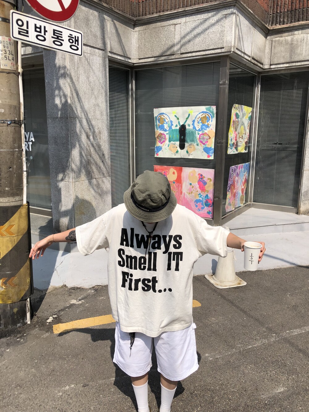 늘 조심하자는 취지로 만든, 알고 보면 흰색이 아닌 빈티지 가공이 들어가서 누리끼리한 화이트 컬러에