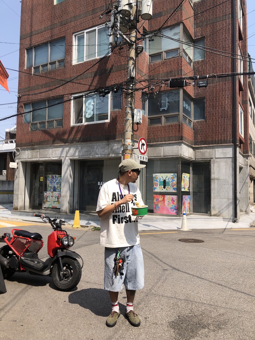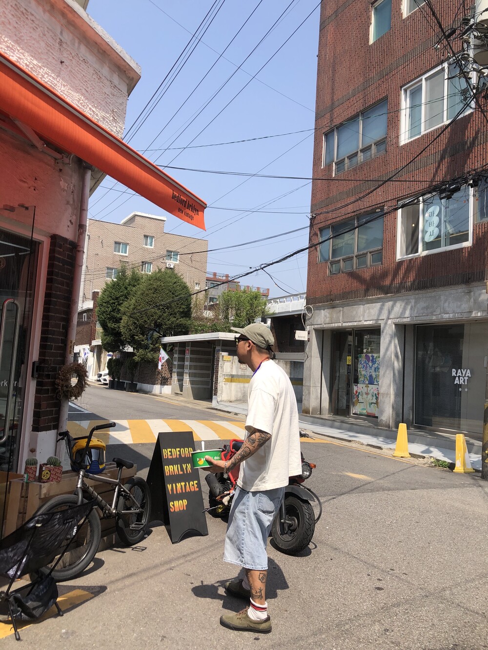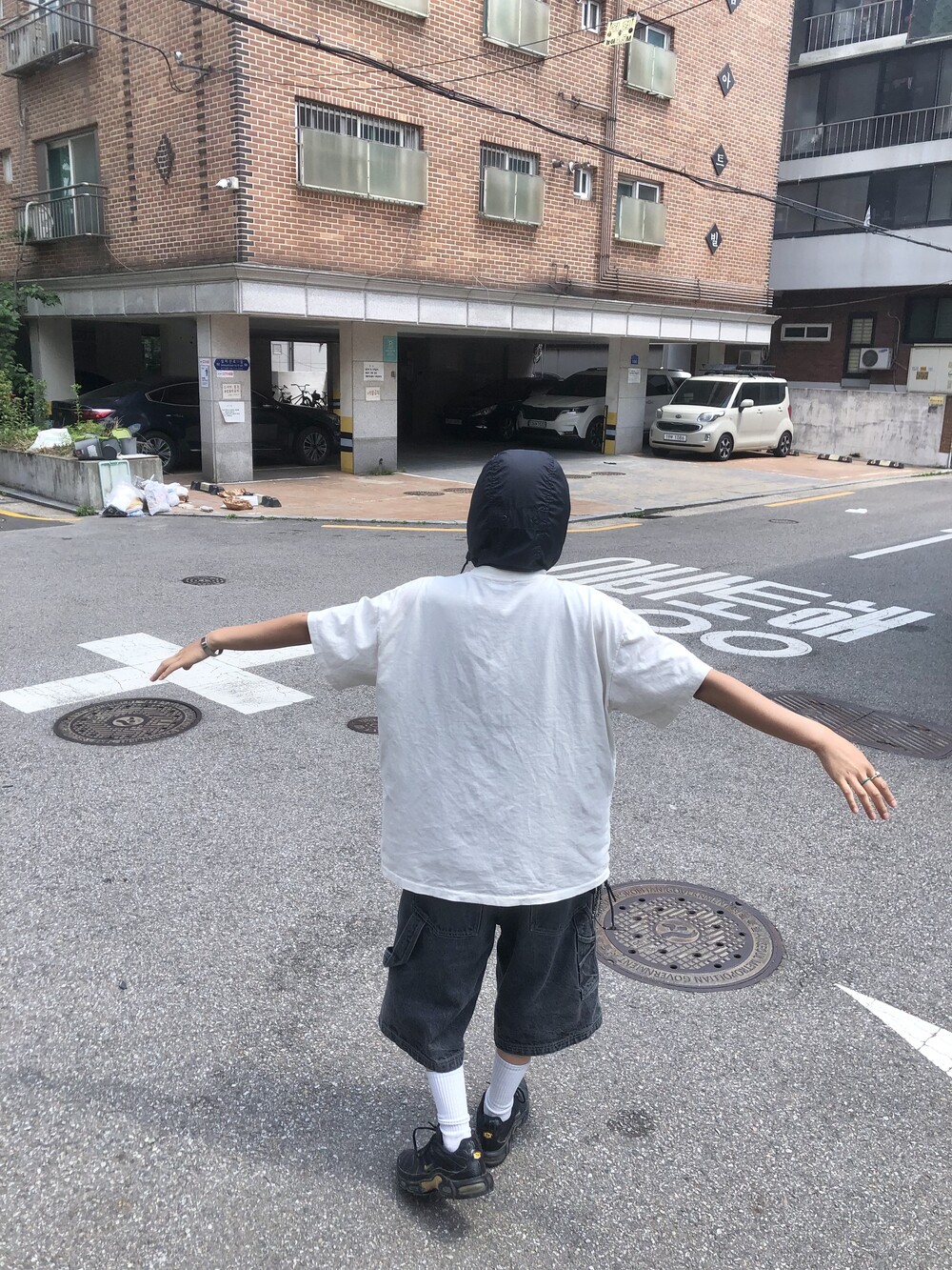 늘 조심하자는 취지로 만든, 알고 보면 흰색이 아닌 빈티지 가공이 들어가서 누리끼리한 화이트 컬러에