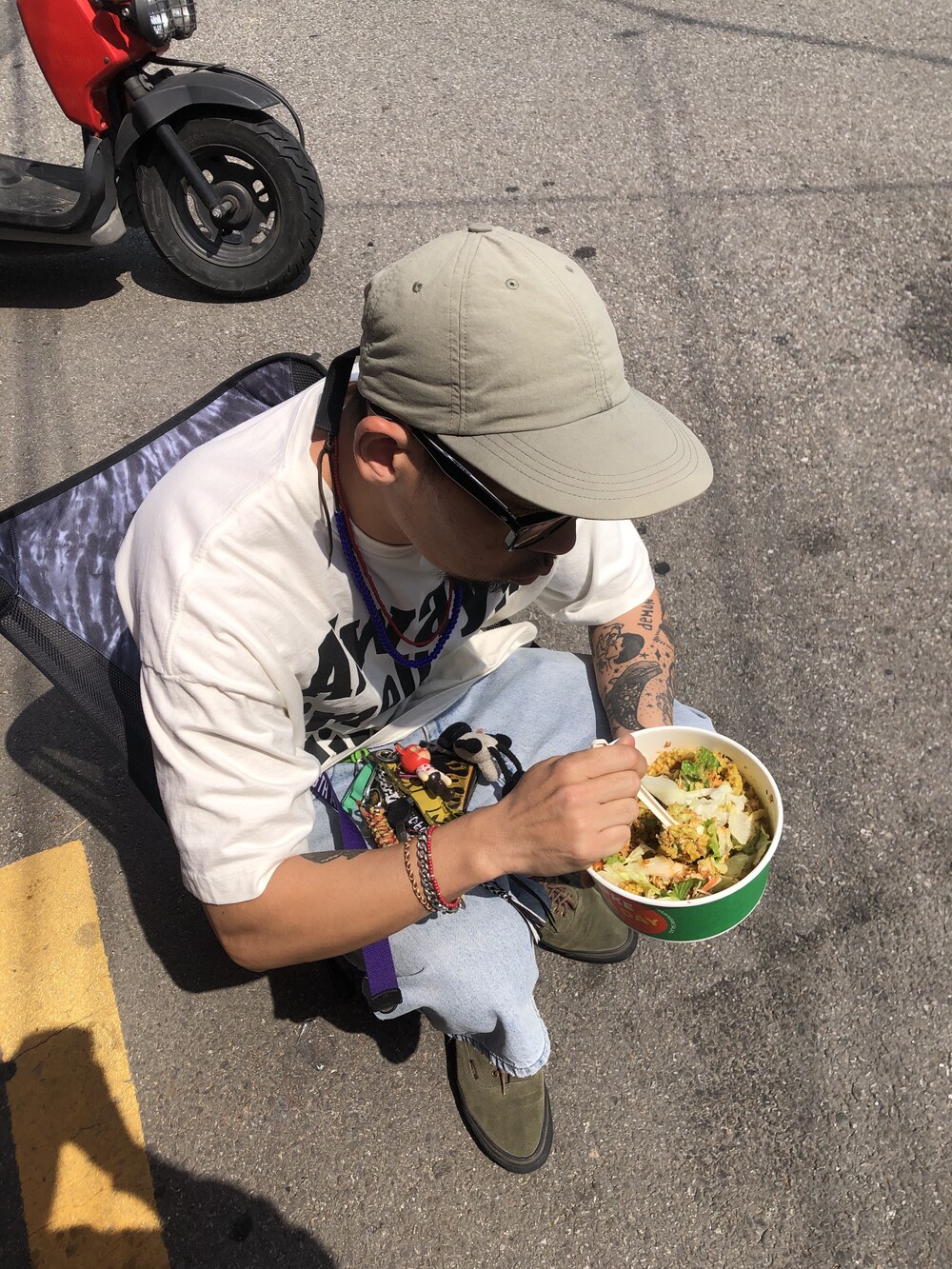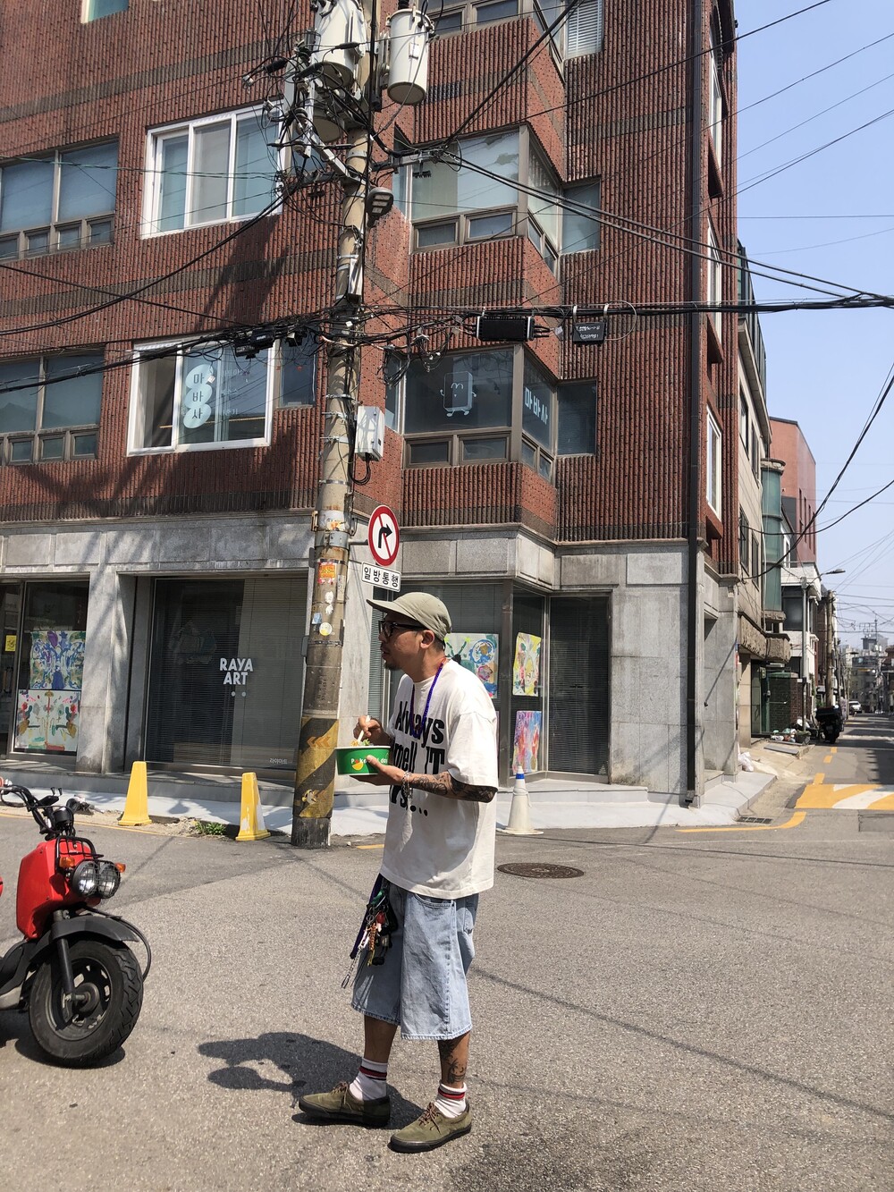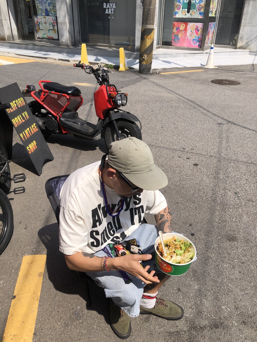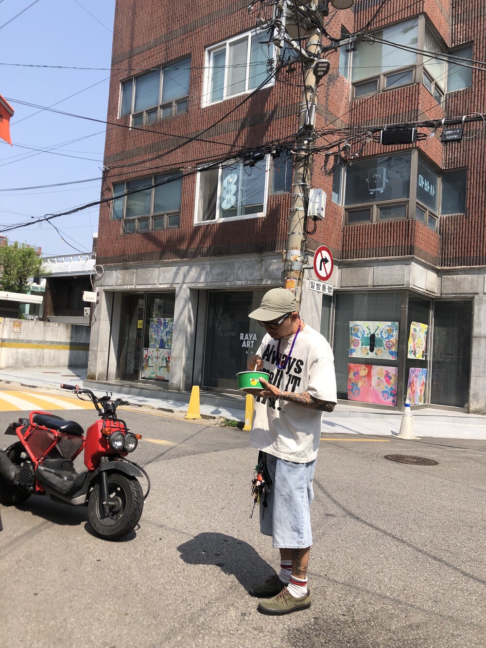 늘 조심하자는 취지로 만든, 알고 보면 흰색이 아닌 빈티지 가공이 들어가서 누리끼리한 화이트 컬러에